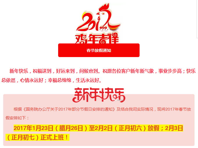 山東任易烹食品有限公司 | 2017年春節放假通知